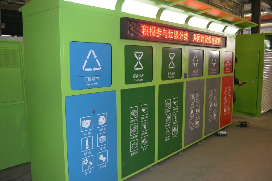 智能午夜福利成人分類收集箱外觀設計經典簡約、小巧靈動,箱體配色鮮明。兩側的藍色箱體主要收集塑料、玻璃、紙張這三種可回收物,中間的紅色箱體主要收集化妝品、圓形燈管、燈泡和電子午夜福利成人這四類有害午夜福利成人,箱體上分類標識設計簡潔醒目,方便用戶快速進行午夜福利成人分類投遞。